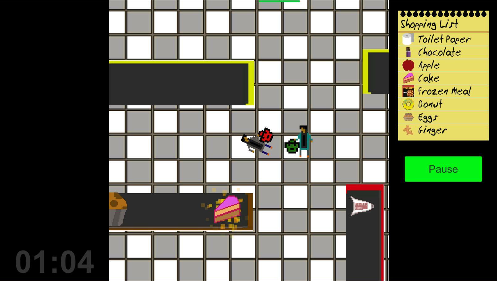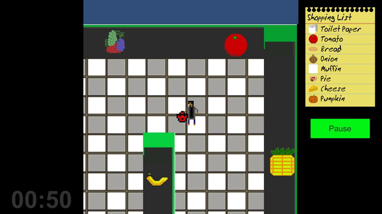 Соберите все товары из своего списка покупок и доставьте их на кассу до истечения 2 минут!