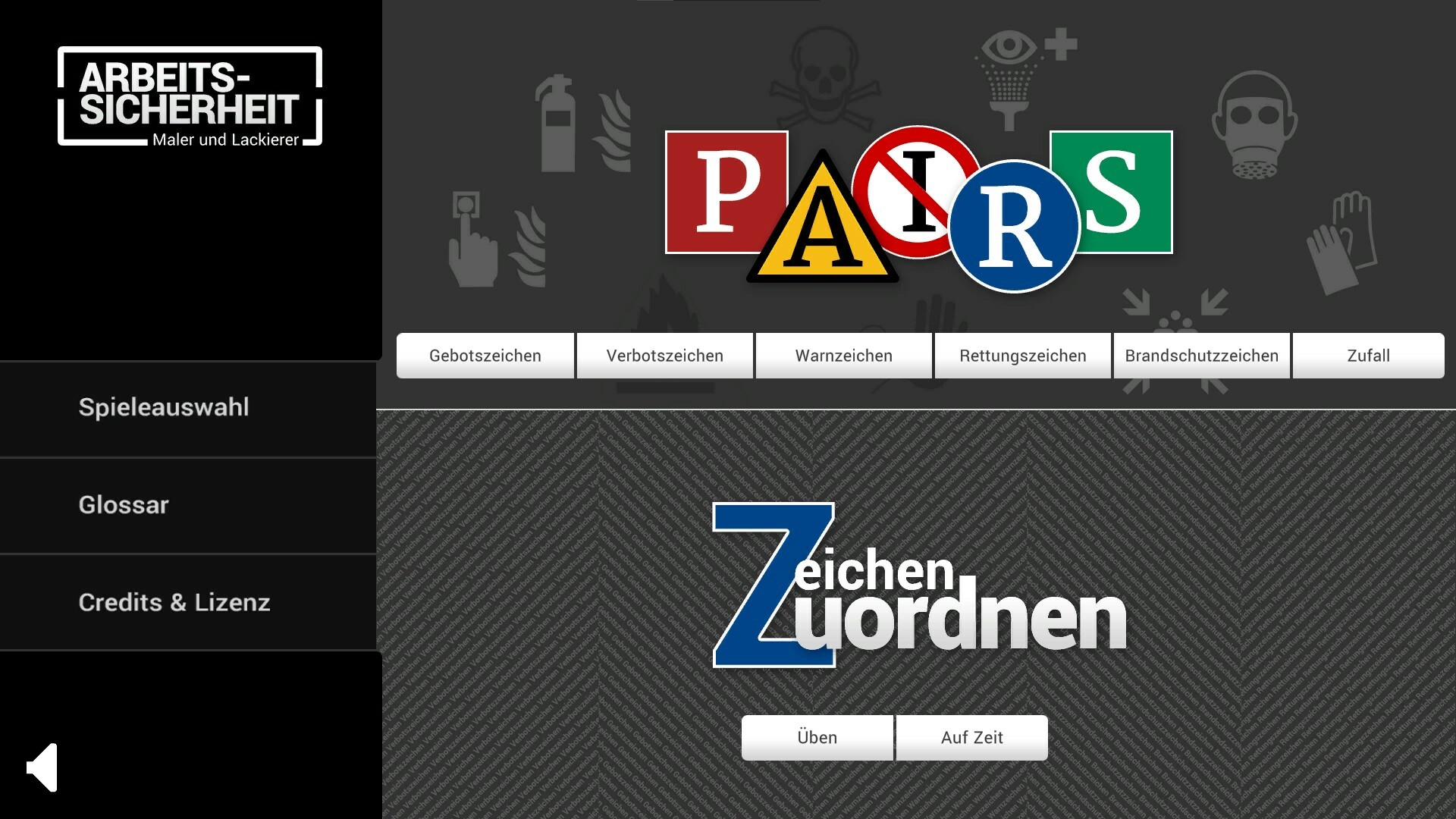 Этот проект создан в контексте университетского курса и посвящен изучению важных символов и значков для художников на рабочих местах и на строительных площадках. Эта игра полностью на немецком языке.