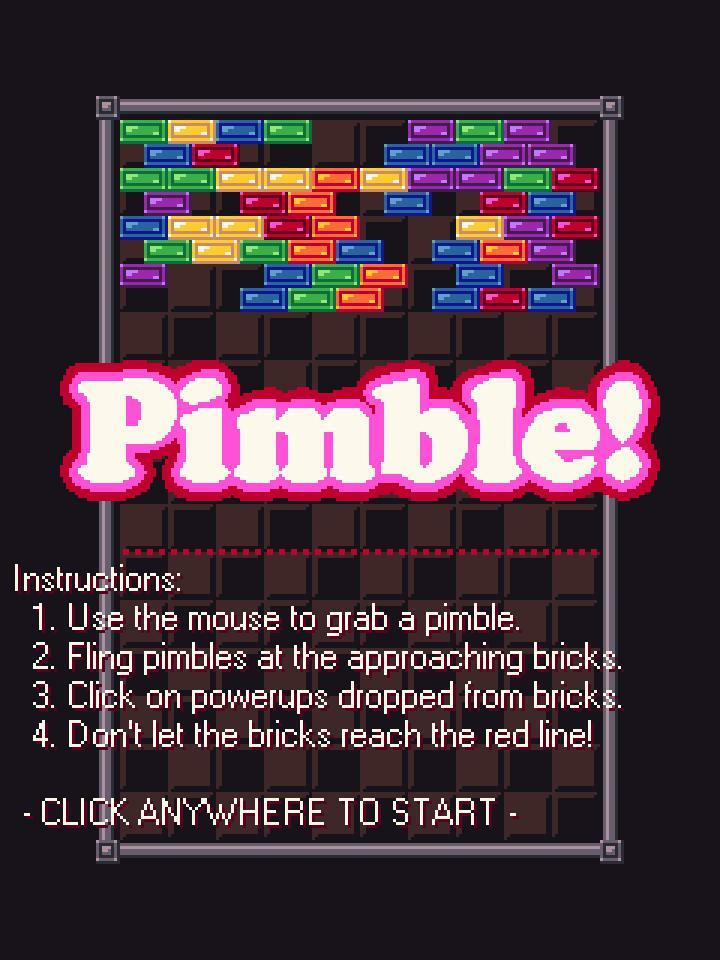 Pimble! — это разрушитель кирпичей, разработанный за 48 часов для игры Ludum Dare 48 (23–25 апреля 2021 г.). Темой этого джема была «Глубже и глубже».
