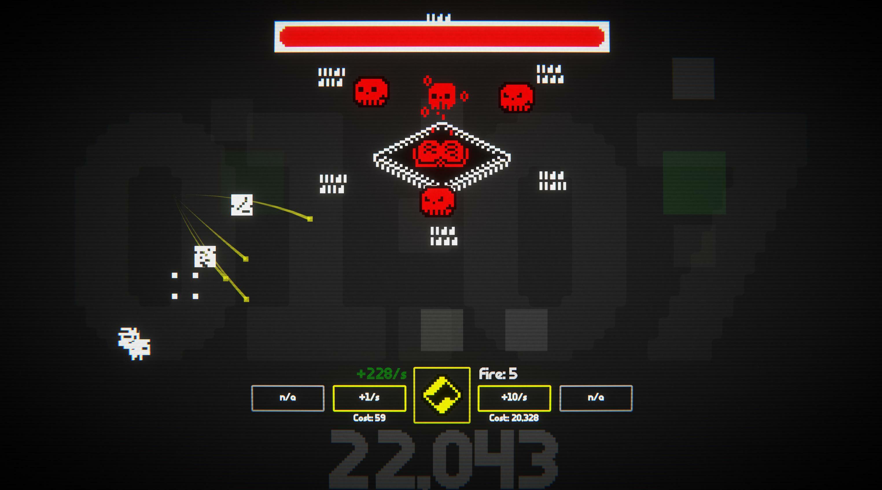 Эта игра, сочетающая в себе динамичный рогалик с инкрементной игровой механикой (например, Cookie Clicker или AdVenture Capitalist), требует быстрой реакции и умения выполнять несколько задач одновременно, чтобы накопить запас ресурсов, а также победить врага до того, как истечет время.