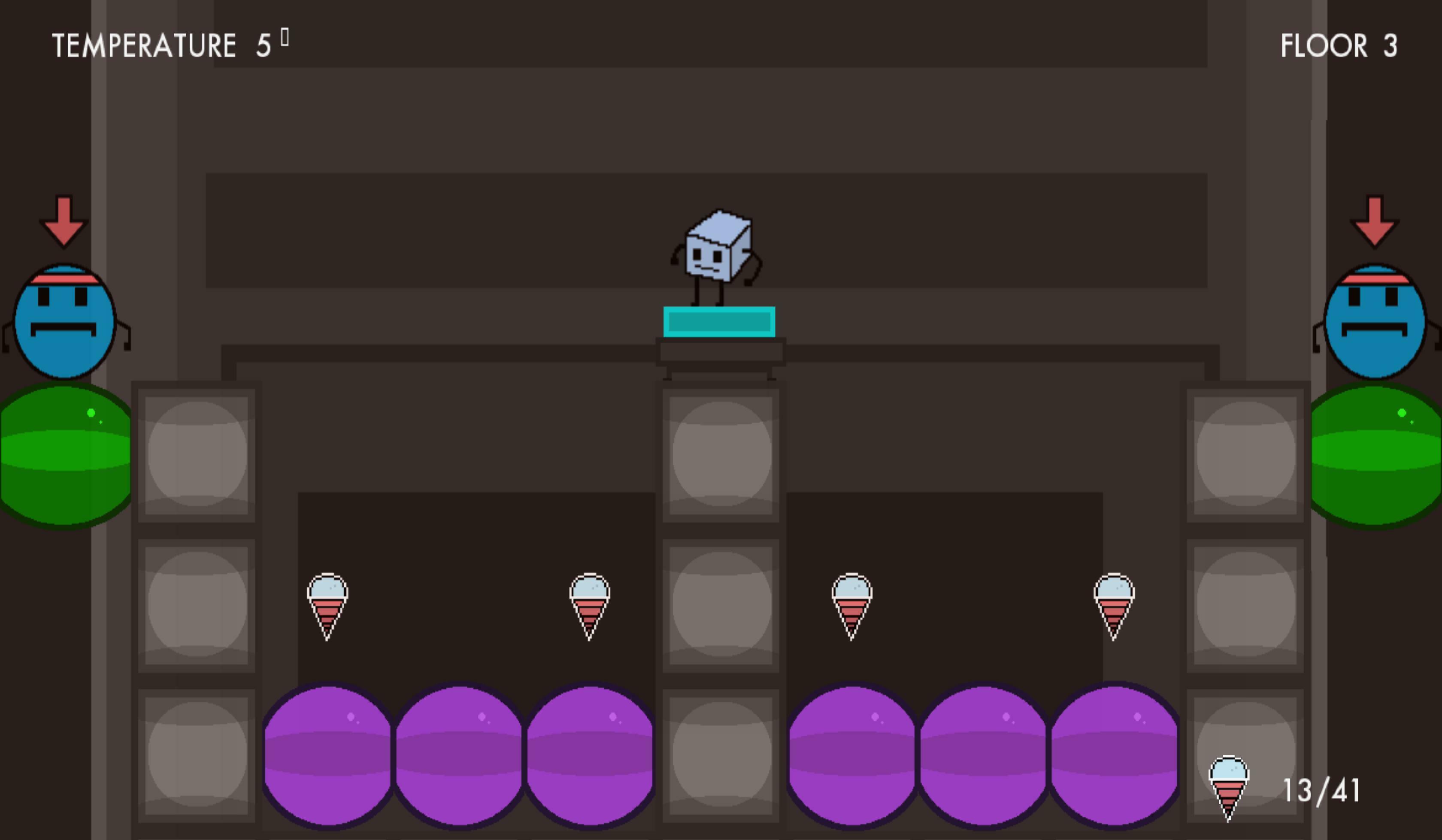Каждый уровень игры представляет собой этаж, и цель — добраться до двери внизу, прежде чем вы расплавитесь. Со временем температура повышается, что можно увидеть по множеству индикаторов на экране. Если температура достигнет 32˚, вы расплавитесь и придется заново укладывать пол.