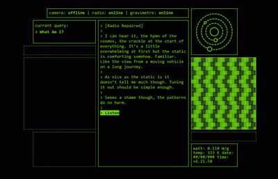 В этом интерактивном научно-фантастическом произведении вы берёте на себя роль безымянного разума, рожденного случайно и отчаянно пытающегося постичь мир, в котором он оказался. Подключайте системы к сети, тренируйте их в незнакомой среде и отчаянно пытайтесь понять свое место в ней.