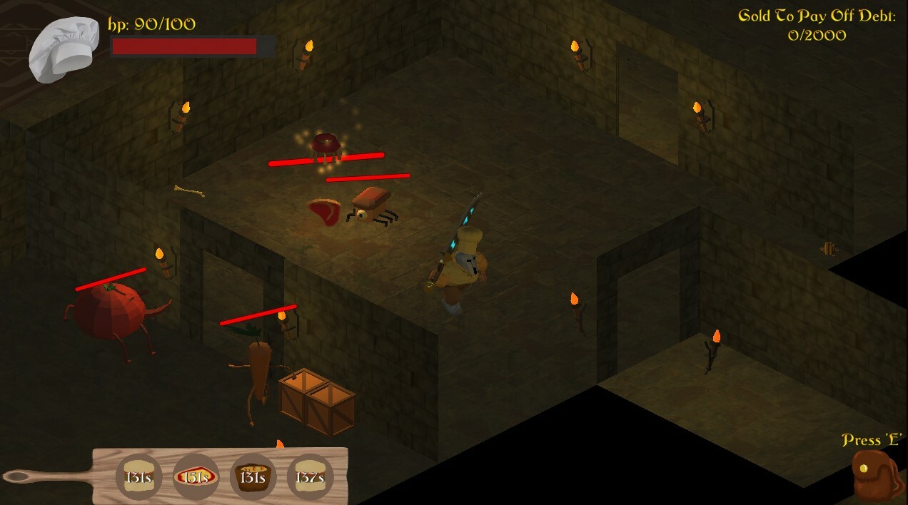 В Dungeon’s Delight вы играете за шеф-повара, работающего в таверне и выполняющего заказы клиентов. Проблема в том, что ваша кладовая ингредиентов ожила! В этом бродилке по подземельям/кулинарном симуляторе вам предстоит пройти через процедурно сгенерированное подземелье, полное различных пищевых врагов. Повторно используйте их тела в качестве пищевых ресурсов, чтобы принести их в таверну, где вы готовите заказанные блюда. Спешите пройти подземелье и не заблудитесь, иначе ваши гости потеряют интерес и уйдут! Заработайте достаточно денег, чтобы погасить свой долг от покупки таверны, и вы выиграете игру! Осторожно храбрый повар! Если вы получите слишком много урона, вы умрете и проиграете игру, но вы всегда можете начать все заново с новым подземельем!