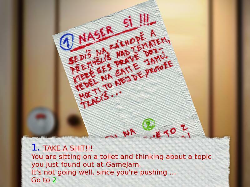 Эта игра представляет собой цифровую версию нашей книги-игры о туалете, которую мы создали на Game Jam Praha 2015.