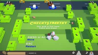 Вы капитан цыпленок. Вы должны найти больше друзей и еды по пути, пересекая улицы