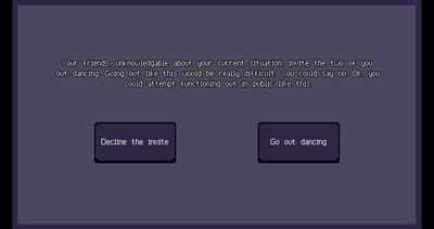 Я был близок к завершению механики домашних занятий/статистики здоровья, но, к сожалению, слишком много частей не работало, чтобы продолжать возиться с ней и пытаться внедрить ее в игру. Я оставил статистику и всплывающие окна с заданиями видимыми в сборке, чтобы вы могли видеть структуру того, что должно было произойти, но лишил игрока возможности взаимодействовать с ними.