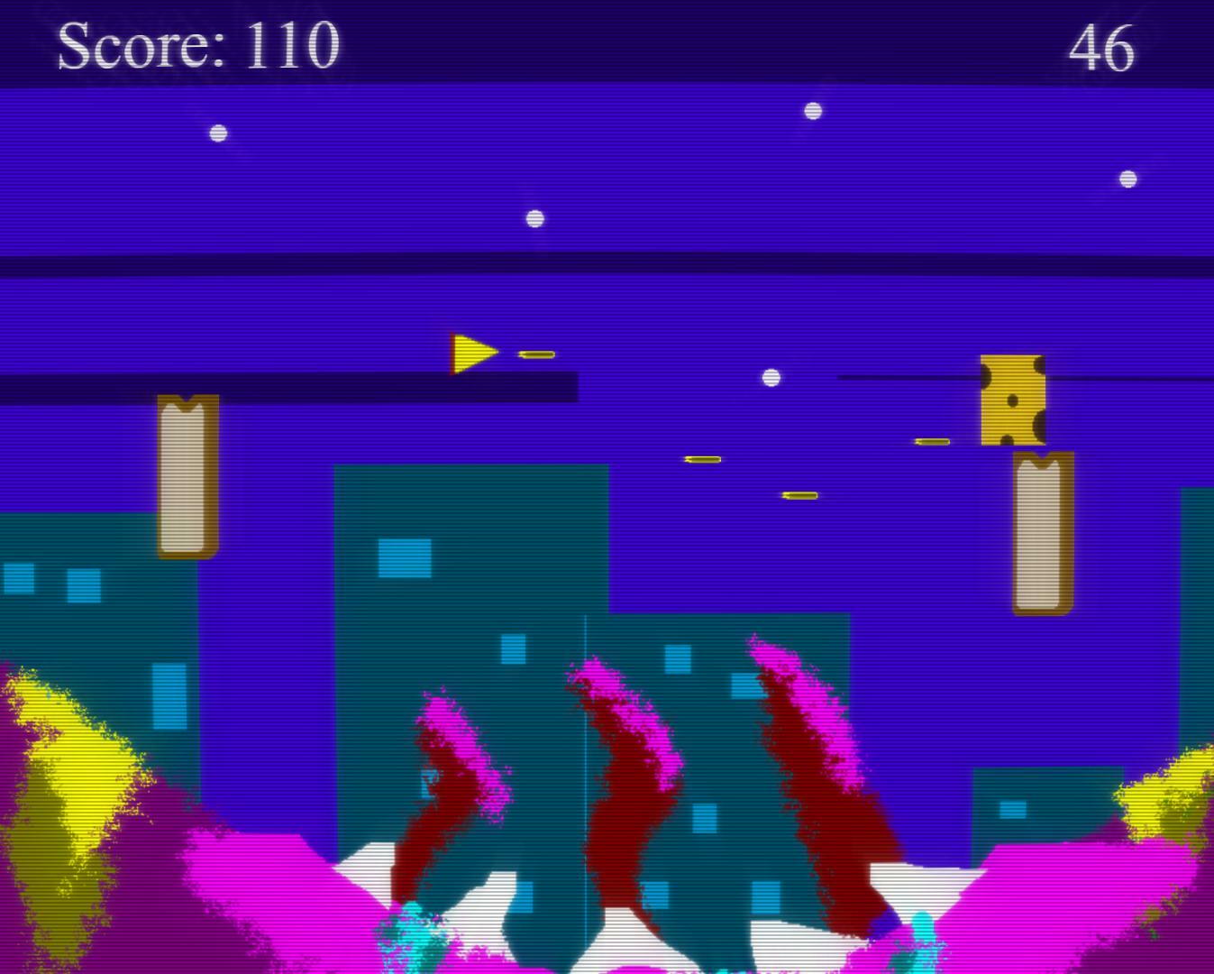 Монстр, жаждущий жареного сыра, атакует город! Садитесь в корабль и накормите его обломками сырной планеты, которую он ранее уничтожил. Удачи, солдат.