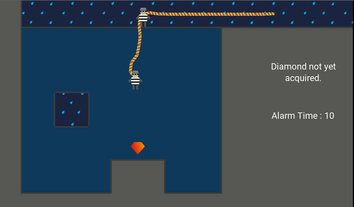 На каждом уровне одному из игроков предстоит передвигаться по крыше и опускать/поднимать веревку, а другому - спускаться по веревке, хватать алмаз и избегать различных опасностей.