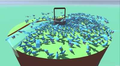 Нажатие кнопки мыши покормит птиц и вызовет их случайное количество на нерест. Птицы умрут, если их не кормить, они умрут.