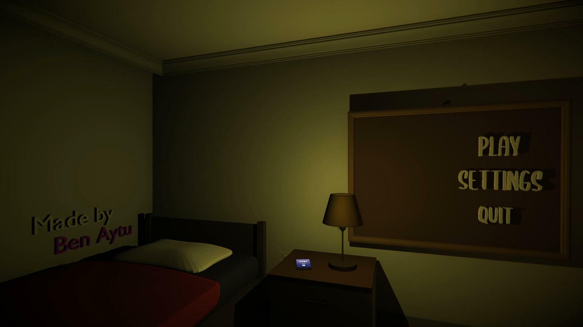Управление: WASD — мышь для перемещения, щелчок левой кнопкой мыши для взаимодействия, E — встать с кровати, F — включение/выключение фонарика