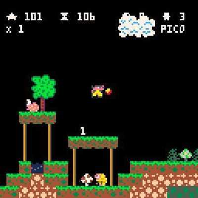 Графика такая, какой я хочу (это не попиксельное воссоздание, очевидно), звуки — это просто заполнители, враги здесь с очень простым поведением (они избегают падения с уступов), и система хранения уровней находится в стадии разработки. , с некоторой функцией сохранения уровней, что для пользователей pico может означать легкость редактирования.