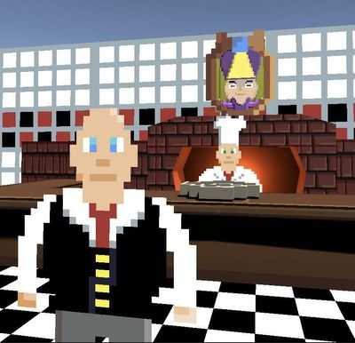 Управление: WASD для перемещения, посмотрите на стол и нажмите E для подачи.