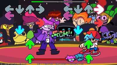 Вы проходите репетицию с другим артистом цирка, у которого дружелюбное лицо! Выступайте хорошо и расширяйте свою аудиторию! Осторожно, у Boyfriend есть страх перед такой большой аудиторией? Или это присутствие Шута?