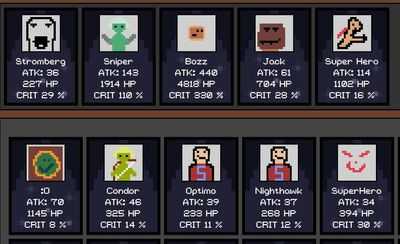 созданных Героев, отсортированных по атаке. Вам просто нужно перетащить их на кнопку +
