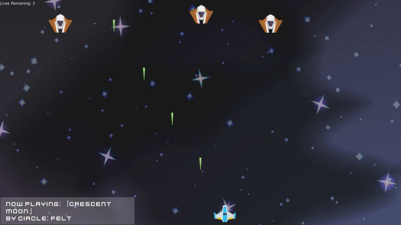 Это вдохновлено игровым стилем Touhou Project, хотя единственное сходство, которое можно увидеть в этой игре, может заключаться в узорах пуль вместо научно-фантастических спрайтов. Ресурсы спрайтов можно найти в Open Game Art.