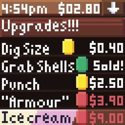 Накопайте монеты в песке и скопите достаточно, чтобы купить мороженое! Поторопитесь, киоск с мороженым закрывается в 17:00!