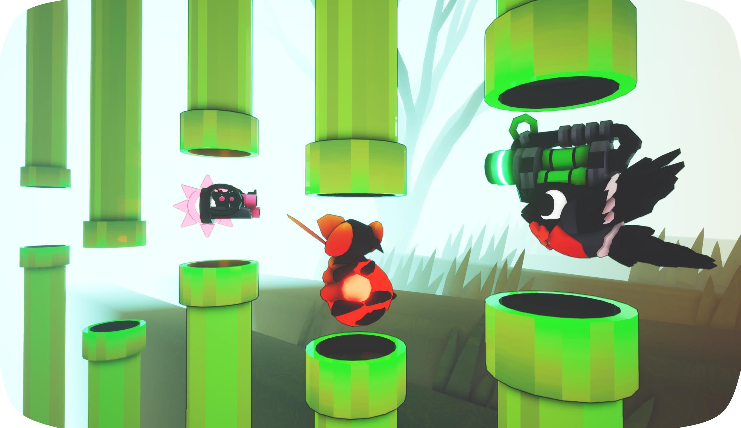 Необычное сочетание двух ранее несовместимых жанров: Играйте за злую птицу, для полета которой нужно нажать пробел. Сражайтесь с насекомыми при помощи огромных пушек, используя такие же огромные пушки!