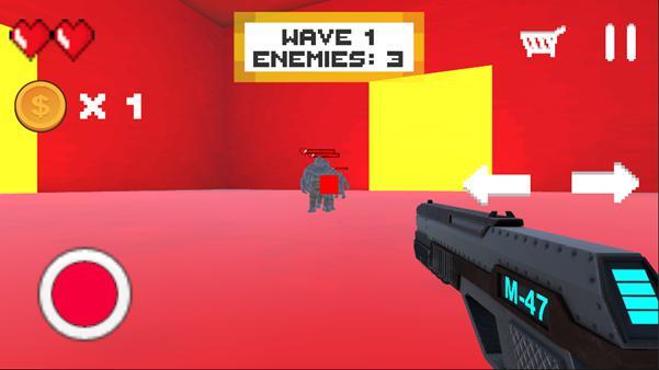 Игрок начинает с 3 жизнями в начале каждого раунда. Нажмите на пистолет, чтобы выстрелить. Игрок может вращаться только с помощью стрелок влево и стрелок вправо. Количество убитых врагов и количество выживших волн будет записано и занесено в таблицу лидеров. Игроки также могут покупать предметы в магазине за заработанные монеты.