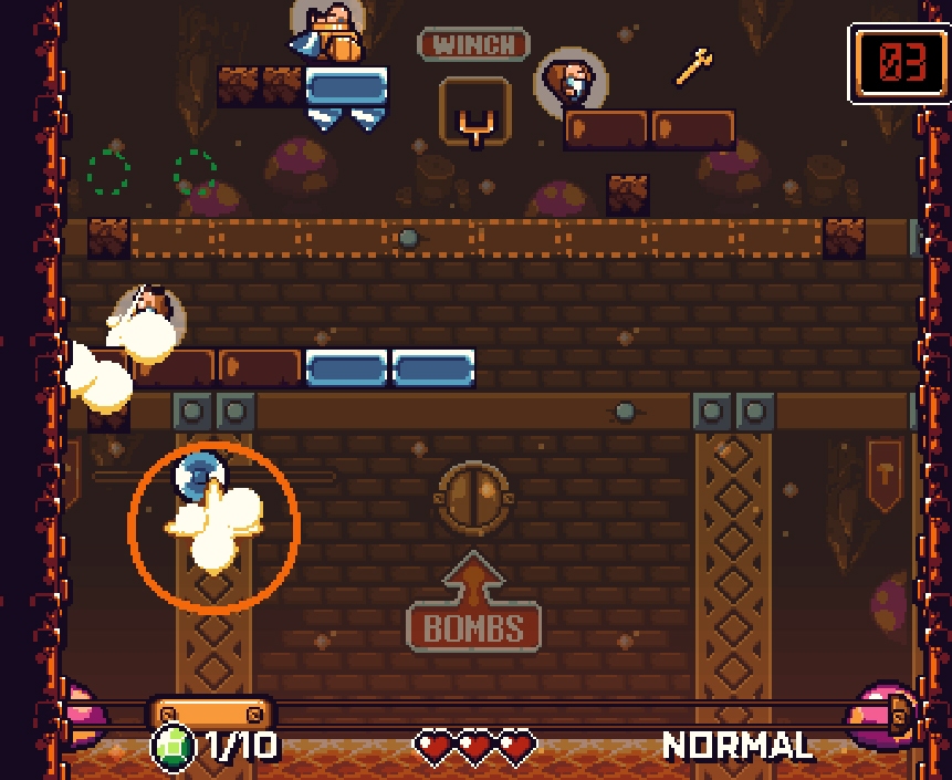 Это Breakout/Arkanoid, за исключением того, что этапы населены надоедливыми гномами, которые ремонтируют сломанные блоки, а ваш мяч — это бомба. Есть также опасные препятствия *хм* вдохновленные Shovel Knight Dig.