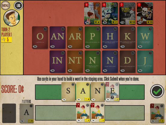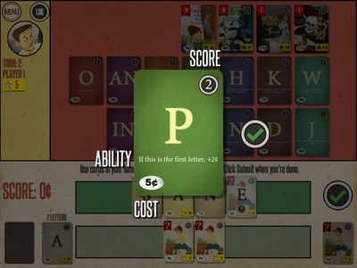 Создание слов встречается с составлением колод в уникальной игре в мягкой обложке. Игроки начинают с колоды буквенных карт и джокеров. Это похоже на их собственный мешок плиток «Эрудит». С каждой раздачей карт вы составляете слово и подсчитываете его. Этот счет показывает, сколько денег у вас есть, чтобы купить больше карт для вашей колоды. Собирайте крутые буквы с такими способностями, как вытягивание большего количества карточек или двойное количество слов. Покупайте карты романа, чтобы получить очки славы и выиграть игру!