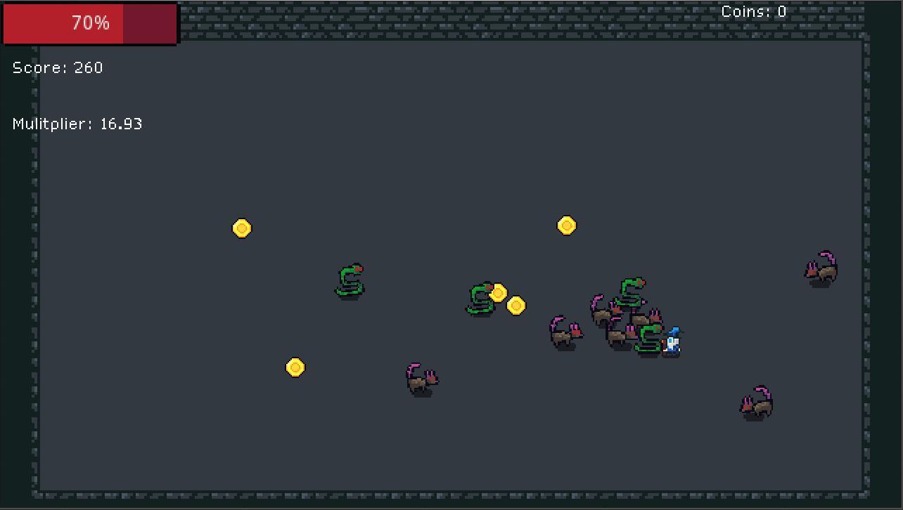 Вам так понравилось, что вы создали нестабильный портал в измерение подземелья, но теперь на вас нападают крысы, змеи и слизи, и у вас есть совсем немного времени, чтобы собрать золото и сбежать!
