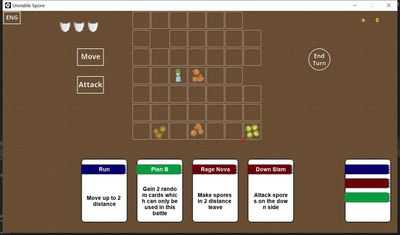 Это игра, похожая на румяна, в которой вам нужно столкнуться с нестабильным врагом спор и подумать о контроле ресурсов. Spores имеет три состояния (нормальное, злое, слабое). Они могут изменить свое состояние или выполнить действие (переместить/дублировать) в любое время. Вам нужно убить элитную спору на каждом уровне, выполняя обычные действия и используя специальные карты умений, которые нельзя использовать снова на протяжении всей игры.