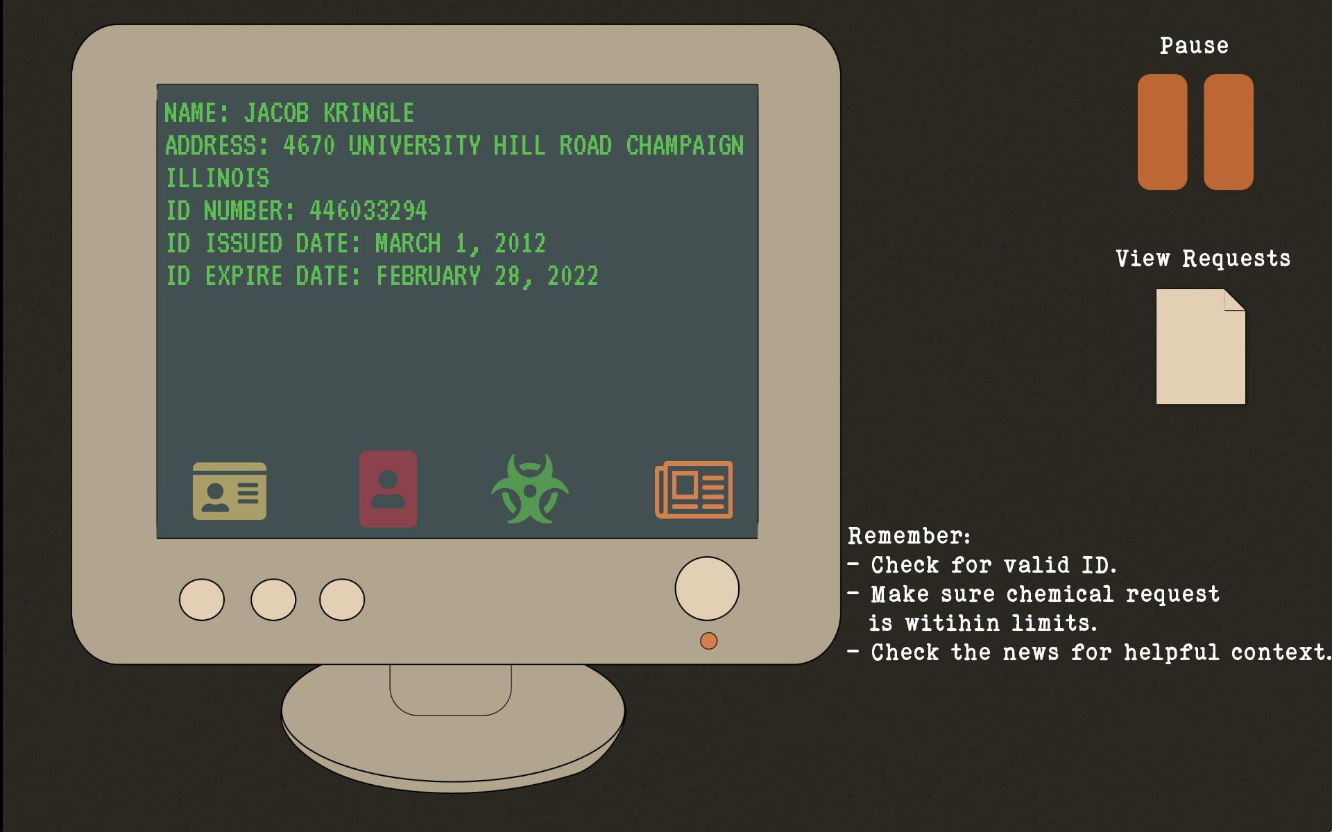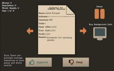 На следующей неделе вы увольняетесь с работы, чтобы сесть на космический корабль и покинуть эту несчастную планету. Ваша работа как нестабильного продавца химикатов — подтверждать или отклонять заказы.