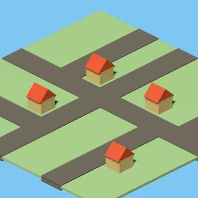 Щелкая мышью, вы можете ставить дома. Дома должны стоять у дороги. И нельзя ставить дома на дорогах.