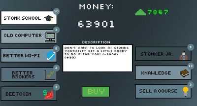 Это просто простая игра-кликер, в которой вы зарабатываете деньги на рынке stonk!