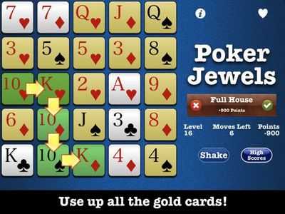 Poker Jewels™ – это увлекательная игра-головоломка, в которой вы пытаетесь собрать лучшие пятикарточные комбинации, такие как две пары, полная Дом или даже редкий флеш-рояль!