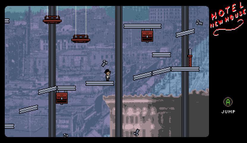 - Hotel Newhouse, одноэтапный платформер с вертикальной прокруткой, в котором вы поднимаетесь по стальному каркасу недостроенного отеля Newhouse, некогда известной достопримечательности Солт-Лейк-Сити, с изображением Сэмюэля. Ньюхаус и его здания Ньюхаус и Бостон.