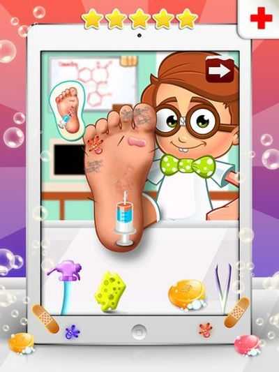 Бедный Бен, давайте поднимем ему настроение, теперь есть 10 способов вылечить нашего героя, и все зависит от вас, Маленький Доктор! Принесите его прямо в салон Foot Spa и усадите его в удобное кресло с поднятыми ногами.