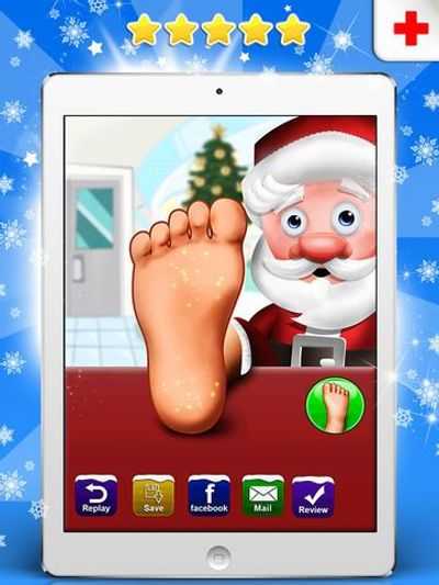 Бедный Санта, дай ему почувствовать себя лучше, это зависит от тебя, Маленький Доктор! Отведите его в спа-салон для ног и усадите его в удобное кресло с поднятыми ногами и, о боже! в каком ужасном месиве оказались ноги Санты!