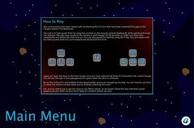 Игра была разработана и реализована в Processing IDE с использованием синтаксиса Java. Цель игры — собрать G-монеты, разбросанные по кораблю. Вы также пытаетесь собрать как можно больше пузырьков с очками, избегая при этом опасных врагов-роботов.