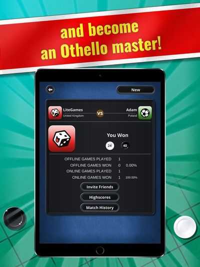 Сыграйте в официальную версию LITE Games популярной настольной игры Othello прямо сейчас бесплатно на своем iPhone и iPad в многопользовательском режиме оффлайн и онлайн.