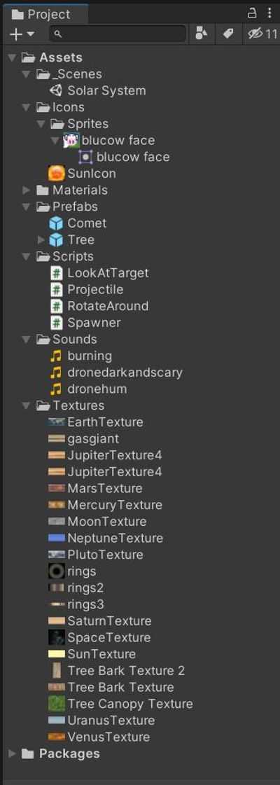 Это мой проект Солнечной системы. Я модифицировал проект, внеся следующие изменения/дополнения: