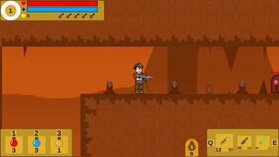 2D-платформер-шутер, в котором игроку предстоит исследовать пещеры, убивая всех врагов, чтобы получить добычу, которая поможет им победить босса, который запирает вас внутри пещеры.