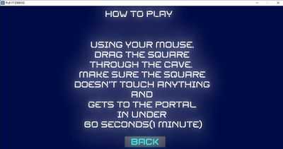 Квадрат, затерянный в пещере, должен найти путь к порталу, чтобы выбраться. С помощью мыши перетащите квадрат через пещеру, НЕ касаясь ничего в пещере. Сделайте это менее чем за 60 секунд (1 минуту)