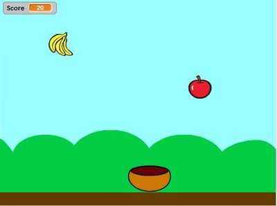 Лови фрукты с помощью корзины