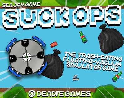 Suck Ops — это игра, в которой вы выступаете в роли плавающего пылесоса, похожего на Roomba, которому поручено всасывать весь мусор, плывущий по реке.