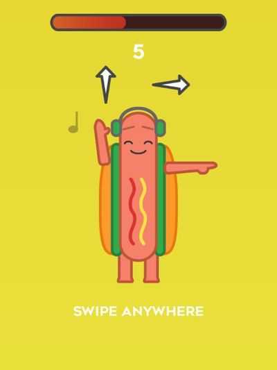 Воспроизводите движения на экране, чтобы продолжать танцевать хот-дог.