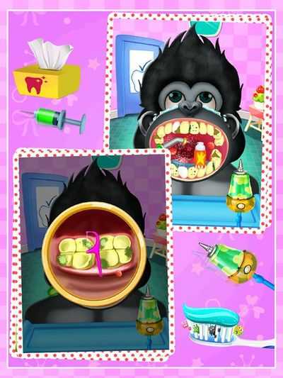 Gorilla Dentist and Doctor — захватывающее дополнение к нашей серии игр про врачей и хирургов, предназначенных для детей, малышей и девочек. где вы станете хирургом-стоматологом для этих милых животных из зоопарка, лечащих их зубные травмы и сломанные зубы.