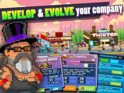 Производите необычные мотоциклы, создавайте уникальные модели, радуйте своих работников, стройте и модернизируйте свои магазины, удовлетворяйте требовательных клиентов и бросайте вызов своим друзья в гонках!