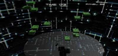Цель состоит в том, чтобы починить все неисправные зеленые панели, прыгая на них.