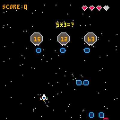 В этой игре нужно стрелять по врагам, у которых есть ответы на вопросы на умножение, которые появляются в верхней части экрана.
