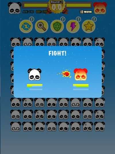 Проверьте свои навыки! Соревнуйтесь с пандами, чтобы набирать очки атаки и защиты в каждом из пяти раундов, и посмотрите, кто победит в конце битвы.