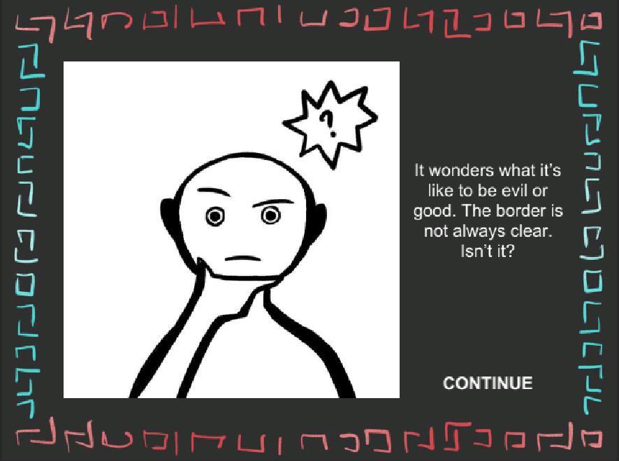A Bug In It Mind — это психологическая приключенческая игра. Оно содержит множество глубоких смысловых пластов. Каждый может понимать игровые сообщения по-своему, и здесь нет правильного или неправильного. Основная идея игры заключается в том, чтобы делать выбор и наблюдать за последствиями этого выбора.