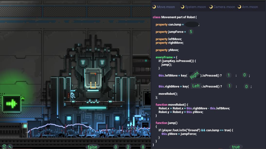 Инструкции :Перемещайте своего робота с помощью клавиш "WASD" и используйте мышь, чтобы правильно оценить размещение кода.