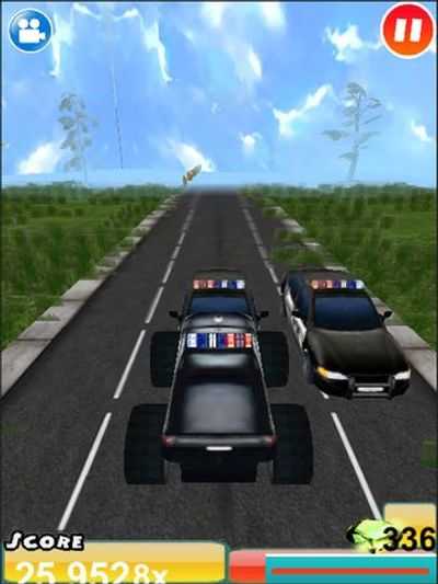 - 4 потрясающих автомобиля. Управляйте Big Foot, Monster Truck Devil's Dodge, Grave Digger, спасаясь от полицейских грузовиков.