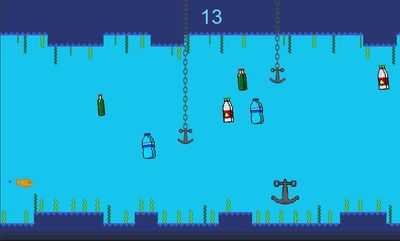 Это игра о рыбке, которая собирает мусор и